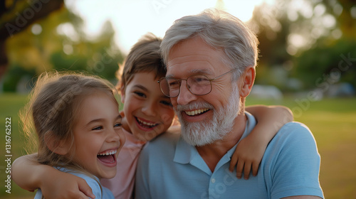 grandfather, grandchild, laughing, happy, family, bonding, summer, joy, togetherness, love, childhood, elder, fun, emotional, warm, hugging, play, human relationships, senior, connection, nature, grandparent, sunset, affection, heartwarming, closeness, memory, support, retirement, elderly, carefree, playful, smiling, lifestyle, natural light, happiness, golden hour
