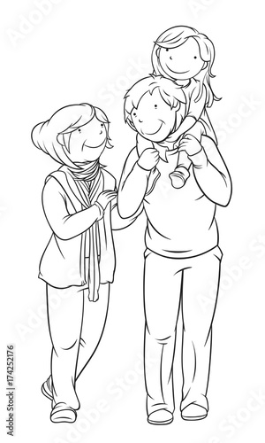 clip art, children, family, grandparent, vector, colouring, page, outline, colouring, book, drawing, vignetting, illustration, art, artwork, background, isolated, girl, children, young, female, caucasian, people, adult, together, active, portrait, character, graphic, design, element, woman, education, lifestyle, childhood, cartoon, style, couple, elderly, grandchild, granddaughter, grandmother, grandfather, man, old, black, line, contour, piggyback