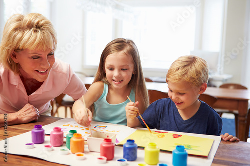 grandmother, grandchild, picture, drawing, painting, art, creative, together, home, indoor, helping, encouraging, homework, enjoyment, grandparent, grandson, granddaughter, grandchild, children, children, girl, female, boy, male, woman, woman, 60s, 60s, senior, caucasian, three people, people, person, horizontal, happy, smiling, kitchen