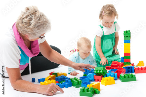 grandmother, home, grandchild, children, senior, woman, play, block, colours, children, teaching