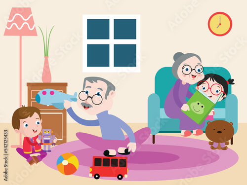 person, grandchild, children, grandparent, family, grandfather, together, senior, woman, man, happy, grandmother, smiling, generation, love, female, granddaughter, grandson, male, boy, horizontal, retirement, togetherness, fun, young, elderly, children, happiness, sitting, mature, retired, age, home, little, 70s, indoor, playing, 60s, affection, enjoyment, room, smile, reading, book, toy, sofa, living room, children, illustration