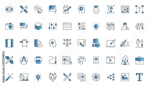 Graphic design trendy flat line icon pack. Icons for graphic design, web design icon set.
