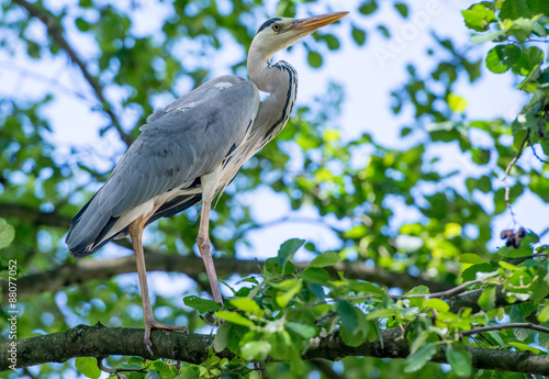 Graureiher in freier Natur auf einem Baum, Nahaufnahme