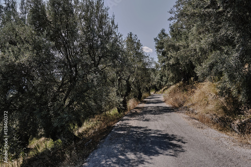gravel, road, tree, olive, cloud, plant, leafy, cultivation, trunk, tree branch, leaf, transport, greek, island, greece, europa