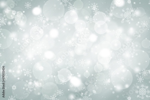 Gray abstract background. white light and snowflakes bokeh winter for Christmas new year blurred beautiful shiny lights use for card banner wallpaper backdrop and your product.