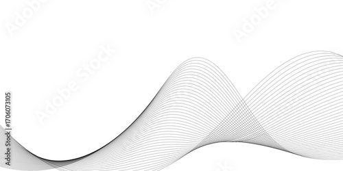 Gray and white wavy curve line with digital future technology concept background. Line art striped graphic template, banner background. Vector illustration.