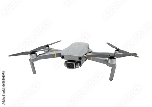 Gray drone quadcopter isolated on transparent background, a modern aerial technology device for photography and videography