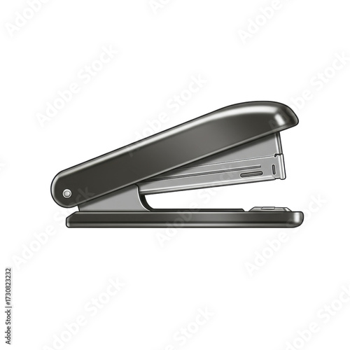 Gray metal stapler for office or school use isolated PNG with Transparent Background