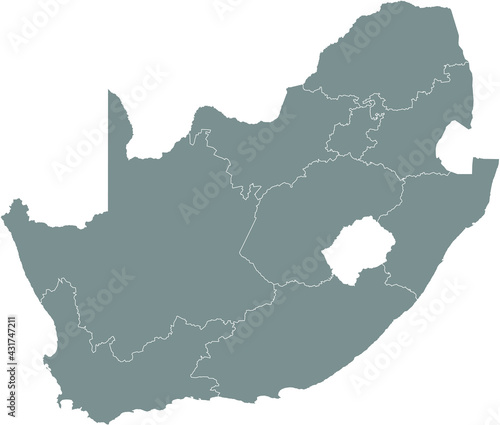 Gray vector map of the Republic of South Africa with white borders of its provinces