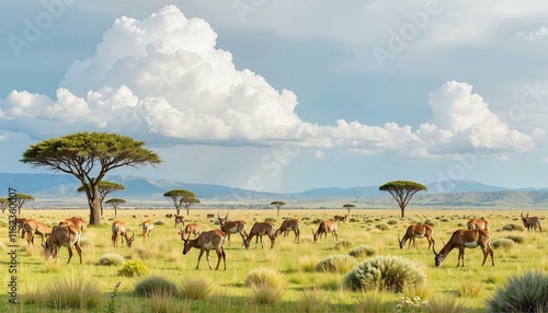 antelope, grazing, acacia, cloud, ecosystem, nature, habitat, wildlife, serenity, landscape, african, outdoors, sky, meadow, calmness, environment, animal, summer, flora, fauna, harmony, peaceful, high-coloured, green, exploration, beauty, scenic, sunlight, diversity, population, group, herd, natural, majestic, 20, no people, biodiversity, earth, conservation, flora and fauna, wilderness, tree