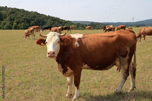 mammal, grass, pasture, grazing, meadow, bovine, outdoors, nature, countryside, cow, fur, fauna, rural, farm animal, cattle, agriculture