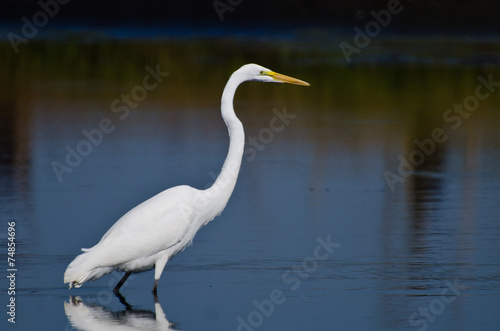 Great Egret Hunting for Fish in Autumn