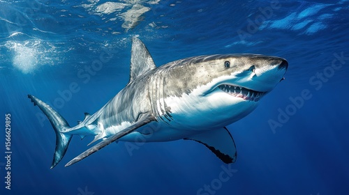shark, great, white, underwater, ocean, sea, predator, marin, animal, wildlife, blue, water, teeth, dangerous, powerful, nature, swimming, aquatic, life, apex, hunter, creature, fish, deep, oceanography, dorsal, fin, carnivore, jaw, gill, streamlined, cold, blooded, wild, habitat, environment, sunlight, ray, open, outdoors, submerged, floating, biology, majestic, sleek, impressive, fierce