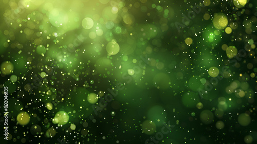green particles and sprinkles for a holiday event background with sparkles and glitters, Abstract green and gold bokeh background. Macro photography with defocused light spots