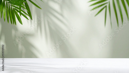 Green Abstract Nature Background with Leaf Shadow Overlay on Cement Wall and Floor Blur