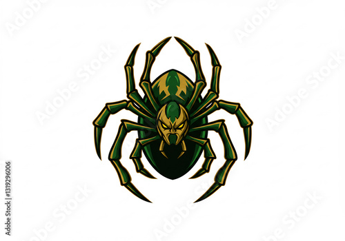 spider, arachnid, insect, green, gold, illustration, design, creepy, scarey, halloween, nature, wildlife, animal, creature, artwork, digital artwork, graphic, retro, vintage, game, icon, symbol, logotype, pattern, texture, background, white background, isolated, clip art, minimal, simple, geometric, abstract, art, design element, graphic design, web design, mascot, character, cute, funny, cartoon