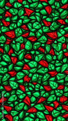 leaf, pattern, green, red, vibrant, seamless, illustration, background, nature, foliage, decorative, design, texture, abstract, colourful, artistic, organic, natural, botanical, repetitive, symmetry, textile, wallpaper, fabric, ornament, graphic, modern, stylish, creative, high-coloured, lush, garden, plant, environment, fresh, lively, dynamic, bold, striking, intricate, detailed, harmonious, aesthetic
