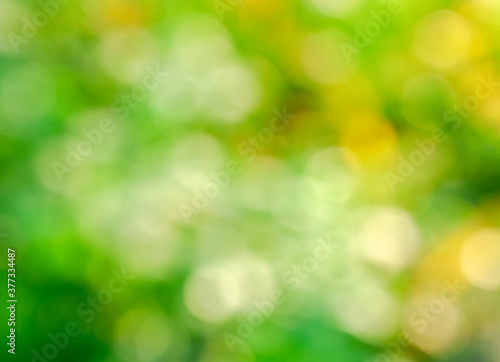 Green and yellow bokeh blurred background of leaves and flower in the day time