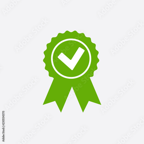 Green approved or certified medal icon in a flat design. Rosette icon. Award vector