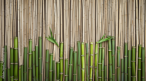 bamboo, green, stalk, vertical, row, arranged, neutral, background, leaf, nature, plant, natural, wood, texture, pattern, design, decoration, interior, exterior, wall, fence, tree, brown, asia, stick, forest, mat, japanese, tropical, wallpaper, textured, closeup, line, material, background