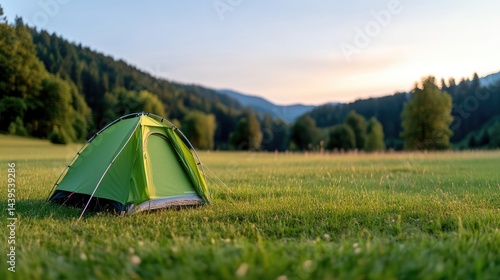 camping, tent, green, meadow, sunrise, mountain, forest, nature, travel, hiking, vacation, relax, peaceful, scenic, beautiful, summer, adventure, explore, wilderness, landscape, view, tranquil, outdoors, sunlight, calm, fresh, fresh air, freedom, escape, get-away, relaxing, grassy, tour tourism, picnic, wildlife
