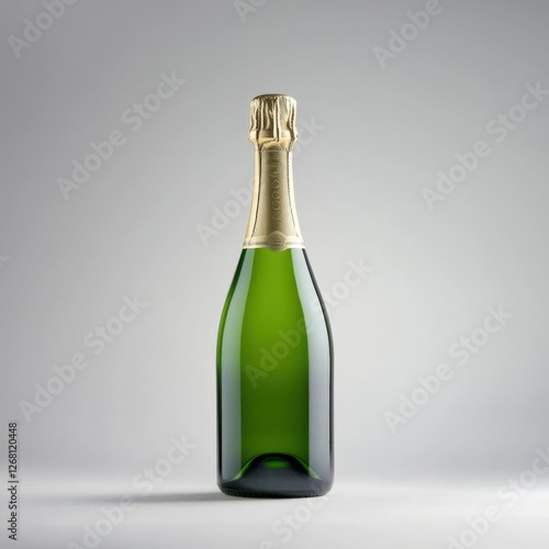 champaign, bottle, green, wine, sparkling, beverage, alcohol, drink, celebration, luxury, gold, foil, sealed, glasses, label, elegant, party, closeup, studio, still life, shadow, grey background, empty, expensive, occasion, premium, product