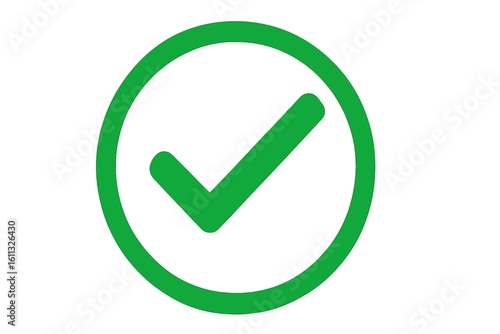 Green check mark icon. Approved symbol. Correct sign. Accept button for vote, election choice. Tick in circle. Quality check. Yes, ok, success & validation concept.