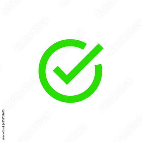 Green check mark icon. Tick symbol in green color, vector illustration.