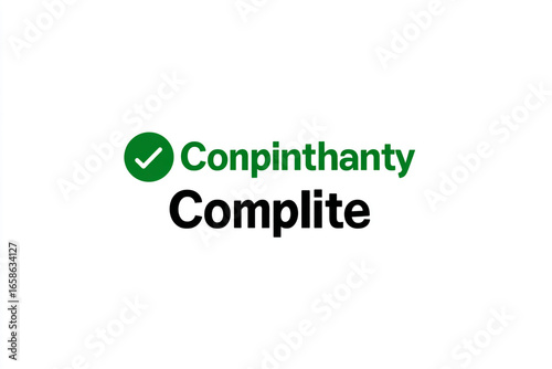 Green checkmark icon next to the words conpinthanty and complite on a white background