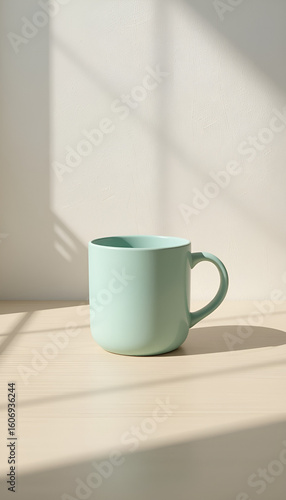 green cup of coffee on wooden table