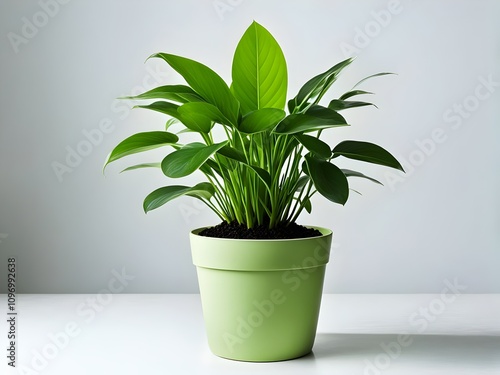 Green eco-friendly house plant in a biodegradable pot, isolated on a white background.