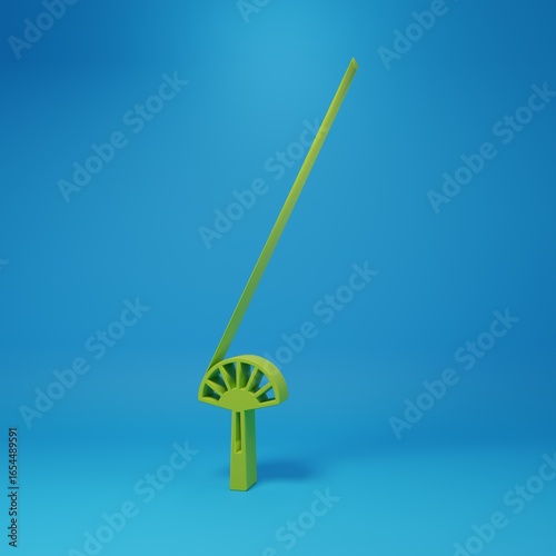 Green Egyptian fan icon isolated on blue background. Minimalism concept. 3D render illustration