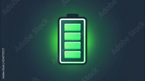 Green energy battery icon glowing in digital environment for technology and graphic design