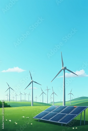green, landscape, electricity, solar, ecology, energy, technology, nature, environment, tree, alternative, climate, conservation, development, earth, eco, future, generator, innovation, planet, renewable, resource, wind, illustration, renewable energy, solar panel, clean, cloud, concept, grass, sky, wind turbine, background, change, climate change, efficiency, environmental, global, global warming, majestic, panel, photovoltaic, production, green energy, recycling, clean energy, balance