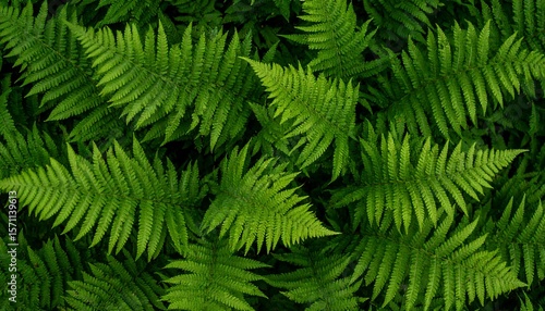 Green Fern Fronds Growing Lushly in Dense Patch Background