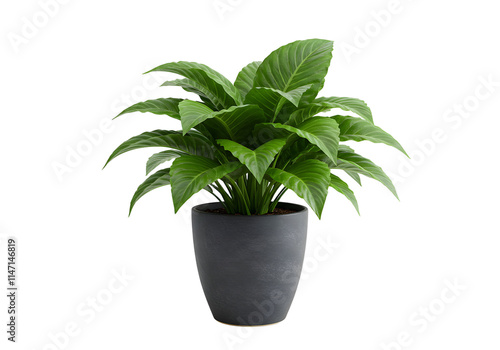 Green Foliage Plant in a Minimalist Pot - Isolated on Transparent Background