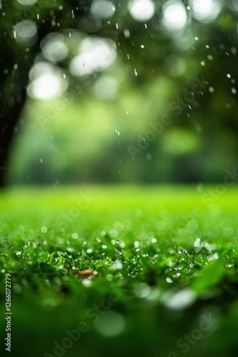 Green fresh grass lawn in Spring.