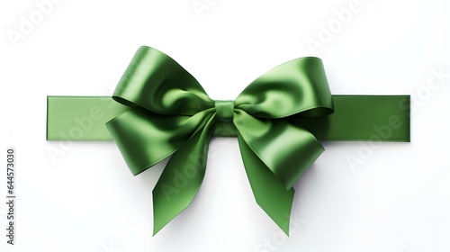 Green Gift Ribbon with a Bow on a white Background. Festive Template for Holidays and Celebrations