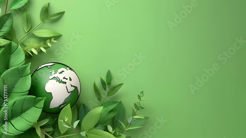 Green Globe with Leafy Frame on Eco-Friendly Background - Earth Day Celebration Concept