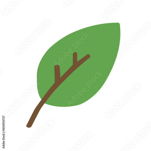 Green Leaf Vector with Brown Stem – Minimalist Nature Illustration