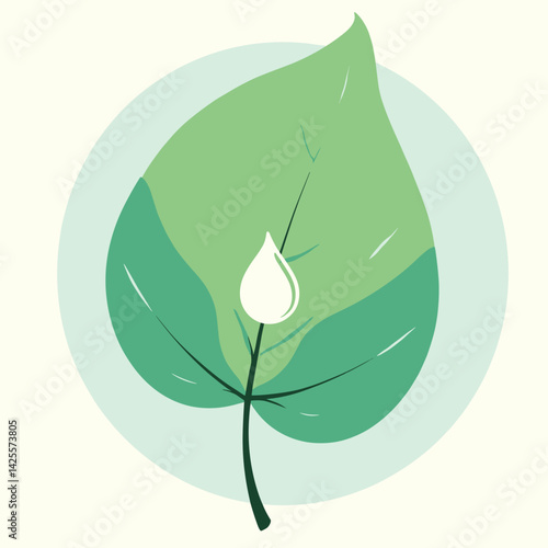 Green Leaf with Water Drop Illustration for Eco-Friendly Design, Nature Blogs, Wellness Websites, Environmental Awareness, and Minimalist Artwork
