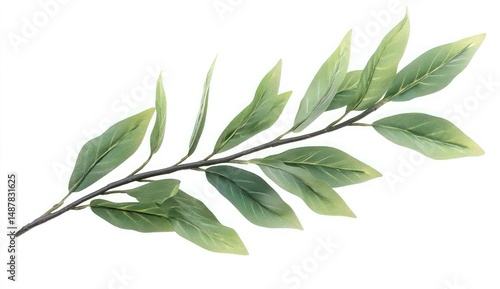 Green Leafy Branch With Fresh Foliage Isolated On White Background For Natural and Botanical Themes
