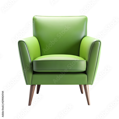 Green Leather Accent Chair | Mid-Century Modern isolated on transparent background