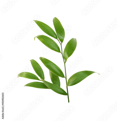 Green leaves at twig of italian ruscus (DANAE RACEMOSA) isolated on white or transparent background