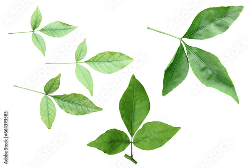 Green leaves Bundle on white background, leaf isolated set, green leaf plant eco nature tree branch isolated