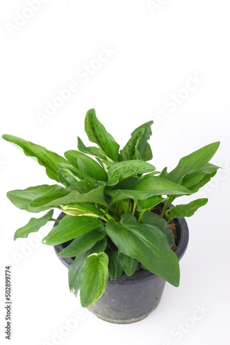 green leaves Drimiopsis Maculata,African hosta,leopard hosta or little isolated on white background.
