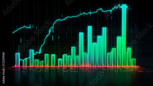 Green market graph, abstract background with lines, Financial neon rising graph and chart with lines and numbers front view, Ai generated image