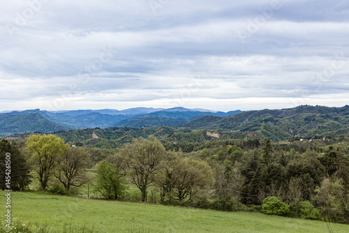 landscape, nature, vale, hill, meadow, green, tree, cloud, sky, scenic, tranquil, peaceful, huge, rolling, layer, distance, horizon, countryside, rural, outdoors, environment, spring, summer, day, cloudy, panoramic, picturesque, idylli, serene, calm, fresh, grass, vegetation, timberland, forest, perspective, emilia-romagna, emilia-romagna