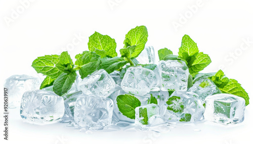 ice cube, isolated, fresh, cooling, refreshing, natural, herbal, garnish, simple, clean, white background, cool, culinary, summer, beverage, cold, favor, crisp, minimalism, closeup, mint, isolated image, herb, clear, ice, cocktail, chilled
