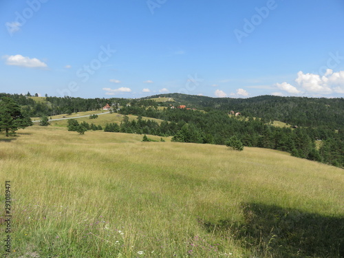 landscape, sky, grass, nature, field, mountain, green, panorama, hill, meadow, summer, countryside, blue, mountain, forest, rural, cloud, tree, country, cloud, hill, view, vale, beautiful, agriculture